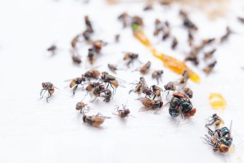 الشرائط اللاصقة (Fly Strips): شرائط لزجة تُعلق في مناطق تواجد الذباب للإمساك به.